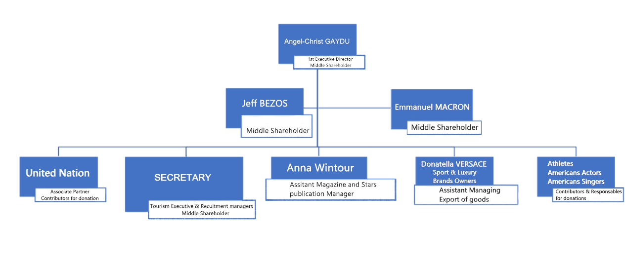 Mr Angel-Christ GAYDU is the first executive actor of this project, that he had prepared with the Vatican, also with heads (Queens, Kings, Cheikh, Sultan, Princes, Princesses, Cardinals, Bishops) of state who have their own army, actors who also work in collaboration with him. Angel-Christ is accompanied more mainly by the first executive director of the KGK group that he founded to carry out this Government project. The mission of the Washington White House, which he has appointed as its first executive manager, is to work in collaboration with the states he has selected, particularly for the recruitment of soldiers, after expertise that will be conducted by the jurisdictional courts.
